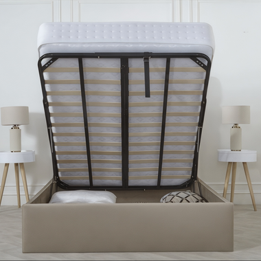 Horizontal Lined Ottoman Storage Divan Bed with Headboard