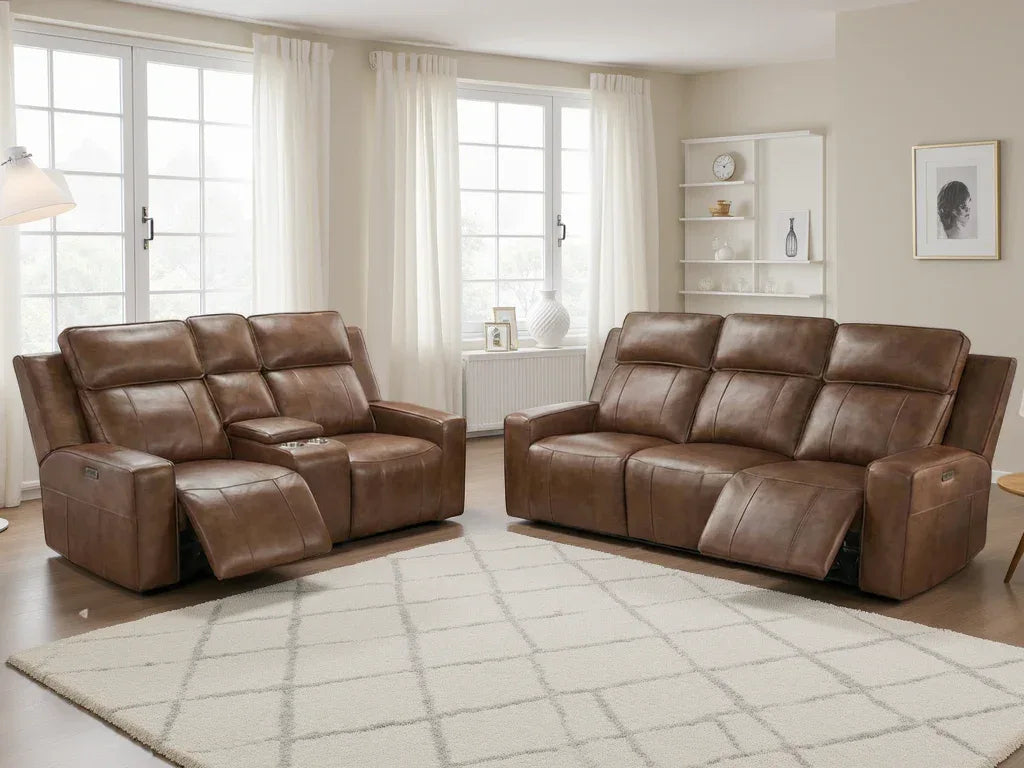 Indulge in luxurious comfort with the Hudson Genuine Leather Electric Recliner Sofa. Available in Olive brown or Grey, this modern sofa features an electric recliner for ultimate relaxation. Genuine leather and a cup holder in the 2 seater add a touch of luxury, while the 3 seater boasts a drop down tray for added convenience. Upgrade your living space and experience true comfort and style.