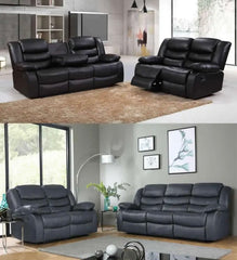 Leather Reclining Sofa Grey, Black, Brown or Cord